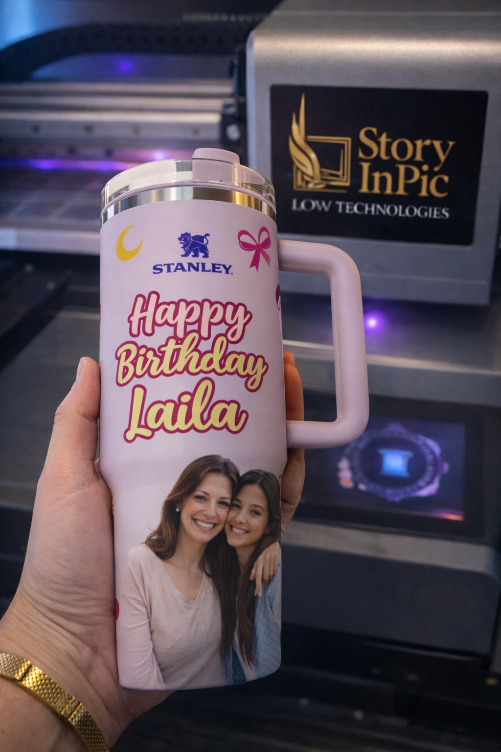 For inquiries regarding UV printing, AIX laser engraving, or available color selections, the StoryInPic team will be pleased to assist you directly via WhatsApp at +971 52 355 2993.